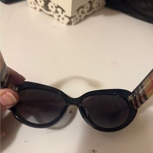 Elevate your style with these Burberry sunglasses featuring classic black frames and iconic plaid accents. Perfect for any occasion, these sunglasses offer both fashion and function.in great conditions