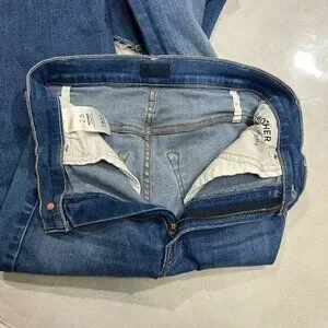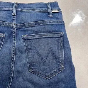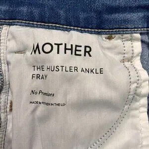 NEW MOTHER The Hustler Ankle Fray Jeans “No Promises” Blue Wash Size 26