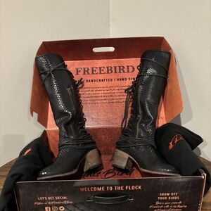 Freebird Coal Black Snake Knee-High Leather Boots