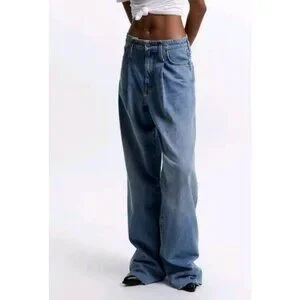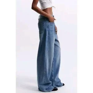 Zara Caia Relaxed Fit Front Pleat Wide Leg High Waist Jeans SZ 12