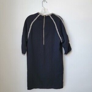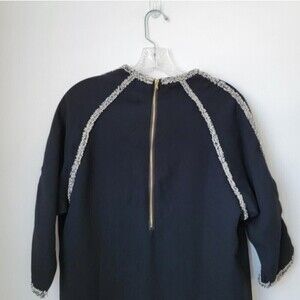KOREAN BRAND Work Dress 3/4 Sleeves Black Tweed Trim Size Large