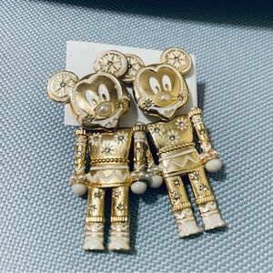 Stylish gold and white Pearl Mickey Mouse Nutcracker earrings. Ideal for holiday Disney enthusiasts.