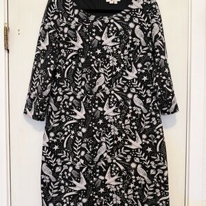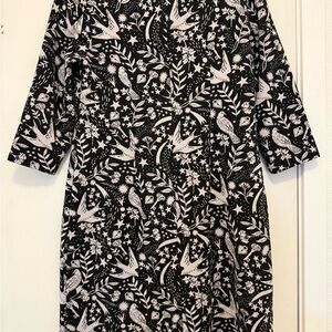 Boden Black and White Nature Print Jackard Long Sleeve Dress with cute bird prin