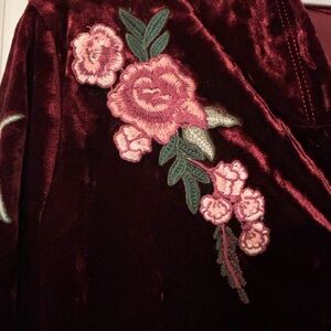 Luxurious velvet jacket with elegant floral embroidery. Perfect for adding a touch of sophistication to any outfit.