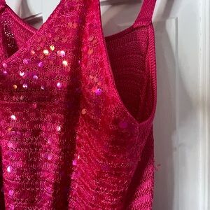 Boston Proper Sequin V-Neck Sweater Tank Fuchsia Purple Top
