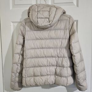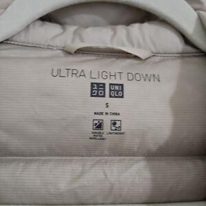 Uniqlo Ultra Light Down, size Small. Has some stains that could probably come off with stain remover. barely noticeable. see pics for details