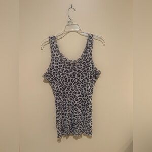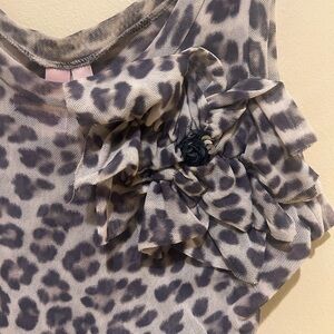 Chic brown leopard print tank top. Features a stylish floral accent. Perfect for casual outings.