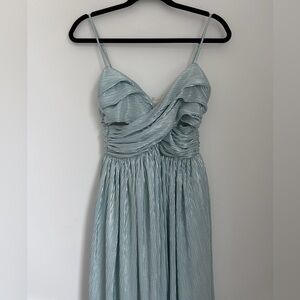 Lovers and Friends Small Ashley Gown in Dusty Blue Metallic. Light icy blue metallic gown, pleated design throughout. Excellent condition.