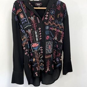 Johnny Was Top Silk Embroidered Oversized Long Sleeve Sz XS