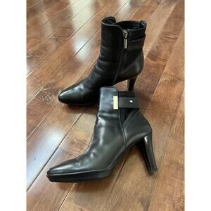 Aquatalia Black Leather Side Zip Royal Waterproof High heel Bootie Italy US 8.5