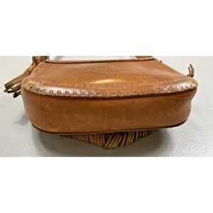 Vintage Leather Hand Tooled Handbag Crossbody Tan Fringe Hippie Boho Foldover