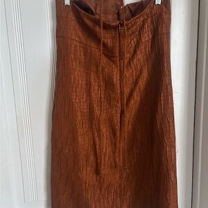 Chic pencil skirt in a rich copper hue. Features a stylish embellished waist. Perfect for elevating any outfit.