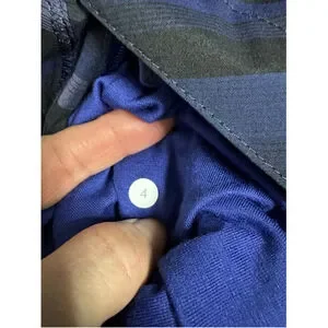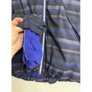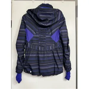 Lululemon Women's 4 Blue Black Striped Zip Front Run Hustle Jacket Packable Hood