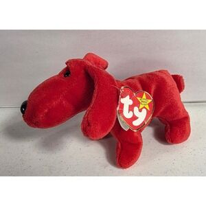 Keywords: Ty Beanie Baby, Rover dog, Red plush, Stuffed animal, Collectible toy, Children's gift, Dog plush, Nostalgic toy, Cuddly companion, Playtime pal, Ty tag, Beanie Babies Collection, Childhood toy