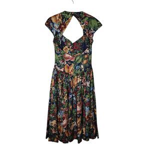 Vintage Floral Drop Waist Pleated Dress Size 10 Cutout Back Cottagecore