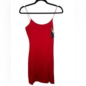 Artizia Wilfred Free chic mini dress with spaghetti straps. Bold red color (Lilloet) for standout style. Stretchy spandex material similar to SKIMS material. Scoop neckline and double lined/layered. Smoke free home. New never worn.