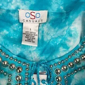 OSO Casuals Blue Tie Dye Tunic Stud Detail neck Size L