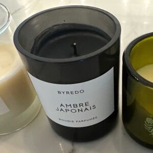 Stylish Byredo candle. Has been burned once or twice, but hours more to go! Beautiful candle.