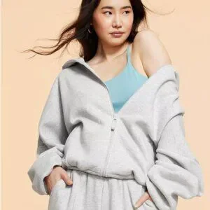 "perfect zip up hoodie! was lucky enough to get a blue and light pink when they randomly had 1 in stock of each. so comfy/cute and the perfect fit and style. had so many compliment’s. hoping to get gray and black & that they add more colors!"