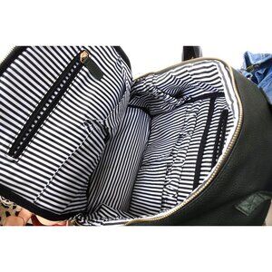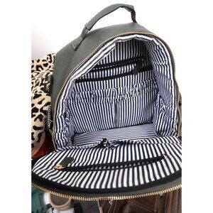 Rad Revolution OG full neutral tan backpack purse. Perfect for everyday use or mommy and baby bag. Tons of storage and pockets and perfect neutral color and pretty stripes lining!