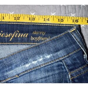 These 7 for All Mankind Josefina Skinny Boyfriend Button Fly women's jeans are pre-owned and in great condition. These have minor fabric wear. They are made of 98% cotton and 2% spandex, and they are machine washable. The approximate measurements are: