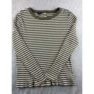 Talbots Petite Striped Ribbed Long Sleeve Top Womens XLP Olive Green White