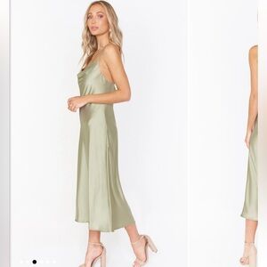 Show Me Your MuMu Verona Cowl Neck Midi in Moss Green Luxe Satin Small