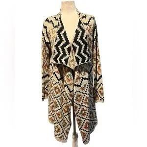 Anthropologie Freeway Open Front Long Cardigan Aztec Southwestern Size Medium