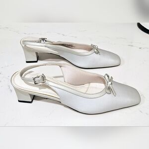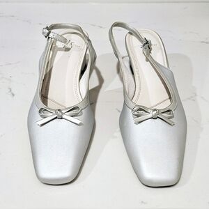 Slingback Pump Heels Jovie Womens Size 8.5 Silver Ballet Toe Bow Front