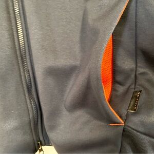 Large Nike zip hoodie Just like the players wear if they have one just like it in their closet!! Like new, never worn. Cool stretchy panels with contrasting orange.. Orange contrast also found inside pockets and hood. Pit to pit measurement shown. One photo taken after a stadium beer.