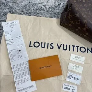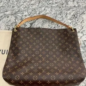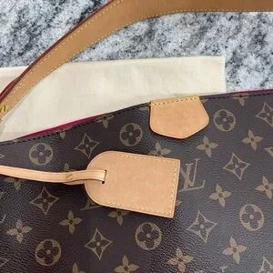 Classic Louis Vuitton monogram design. Elegant brown leather. Comfortable tan handle.