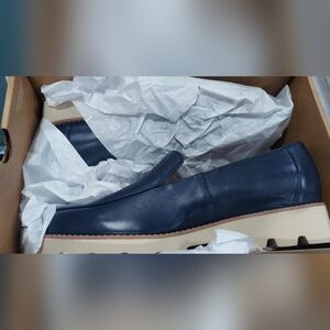 Stylish navy blue loafers with chunky cream soles. Perfect for casual wear. NIB, Vionic loafers size 8.5