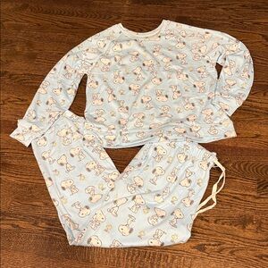Adorable Blue woman’s peanuts size large snoopy Pajamas with Cartoon Print