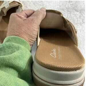 Clarks Cloudsteppers Suede Beige Mule Slip On Size 6 Womens Excellent