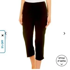 Counterparts Black Pull on Capri Pant with Buttom Hem Detail