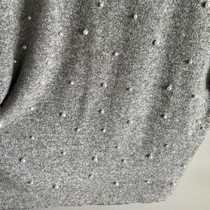Chic gray pearl-embellished sweater by Zara. Soft heather gray knit with scattered faux pearls for a feminine yet minimalist touch.