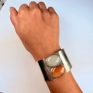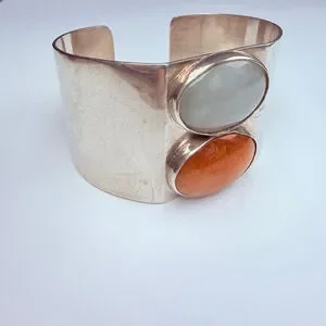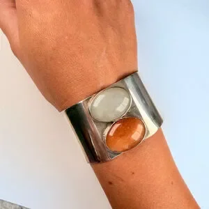 Artisan BIG Orange & Pale Jade Handmade 35mm Wide Sterling Silver Cuff Bracelet