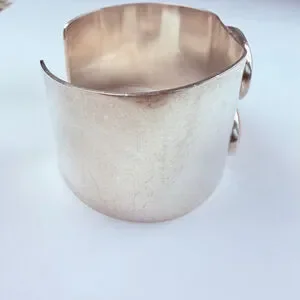 This magnificent artisan cuff is from South New Zealand West Coast in the riverbeds and glacial valleys. It is fully constructed of 925 solid Sterling silver and very heavy. It features two highly significant and treasured Jade nephrite cabochon gemstones. One is an oval cut Rare Raukaraka Orange nephrite and the other is an oval cut Rare Inanga pale green milky color nephrite. The combined weight of the gemstones is 46 carats. The cuff bracelet is adjustable and 35mm in width.