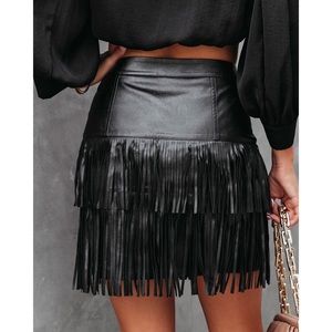 VICI Black Most Wanted Fringe Faux Leather Skirt XL NEW NWOT