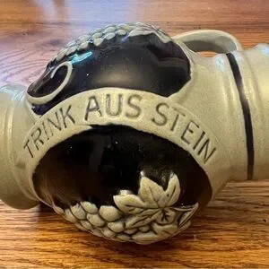 Trink Aus Stein Wine Pitcher Den Edlen Wein German Pottery 1 liter Gray Blue
