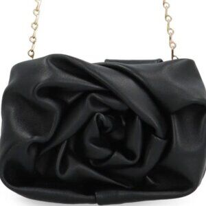 BURBERRY Black Rose Clutch w/Gold Chain & BURBERRY Dust Bag Soft Leather NWT