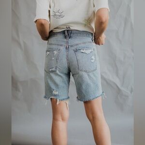 Brand new with tags We The Free for Free People Sequoia Short in Surfs Up medium blue wash. Size 27. Bermuda short length. Factory distressing throughout. Button fly. Functional pockets. Highrise. 100% cotton. Retailed for $78. NWT.