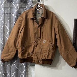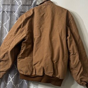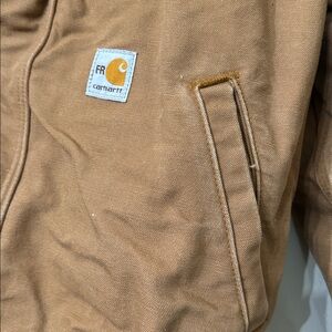 Carhartt Jackets: Men's 101623 211 Flame Resistant Lined Cotton Duck bomber jacket. Size large. There are a few marks on the fabric due to wear.