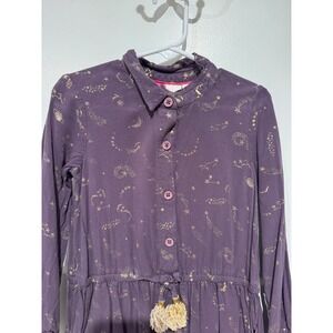 Boden Girls Purple Constellation Print Button Front Dress with Tie Size 6-7