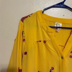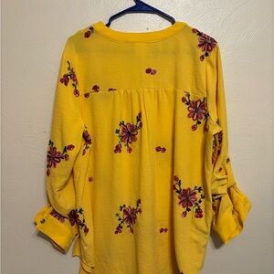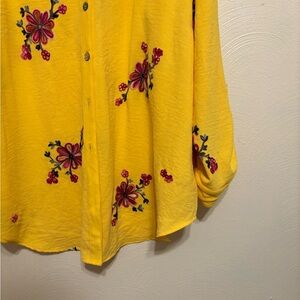 🌼 Fig and Flower Yellow Embroidered Blouse Size 1X — Button Front