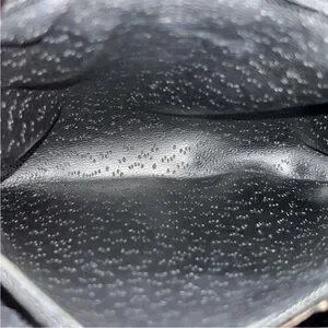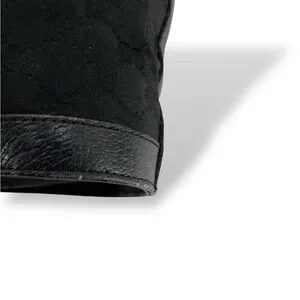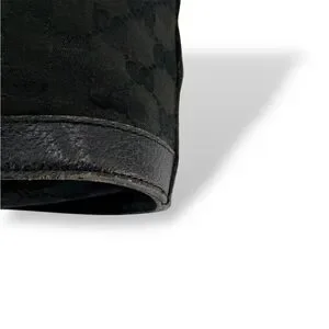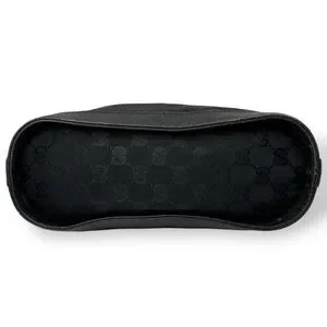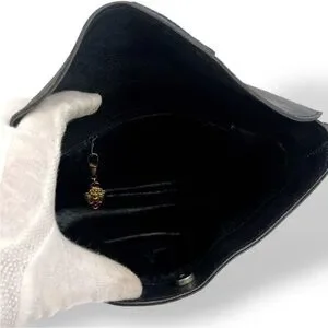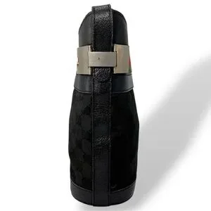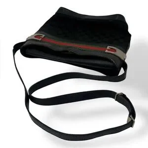 Stylish black shoulder bag. Features signature red and green accents. Perfect for any occasion.