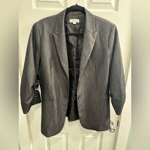 Elegant charcoal jacket by Calvin Klein, ruched sleeves. Ideal for business or evening wear.