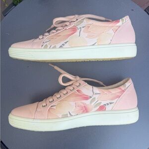 Ecco Soft 7 Leather Floral Sneakers Womens 10 Pink Rose Cream Low Lace Up Logo