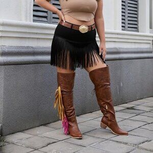 The thigh high cowgirl boots with fringe look great with jeans, shorts, dresses, and just about everything you can think of
