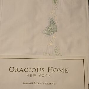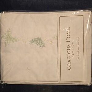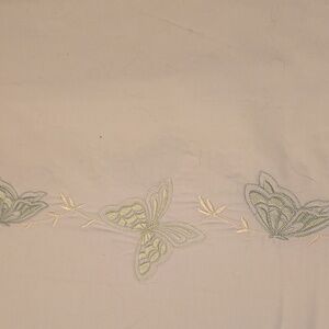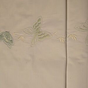 Elegant white linens with green embroidered butterflies 🦋
